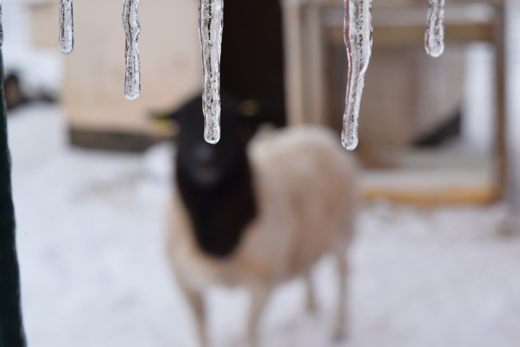 Sheep can handle cold temperatures. My Dorpers are hair sheep, they do not make wool fleece and do not need shearing. Dorpers do fine in cold temperatures and snow. The stress with the winter storm is the large fluctuation in temperatures and the rain. Two days ago we had 60 degree F temperatures. Today the temperature was 21 degree F.