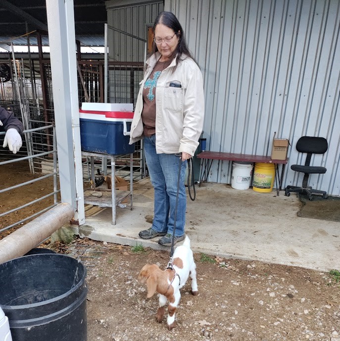 It has been two weeks since I purchased a little baby goat who needed to learn to eat from a bottle. Those who were present when I purchased Spot, were surprised with how fast Spot has grown. Spot has grown. I had to make the dog harness larger this morning to fit him. My friends chuckle as I walk around with my baby goat on a leash. My friends at the sheep auction know I feed and care for my sheep and goats very well. They have seen me trim a ram’s feet with nothing on the ram, and me going around picking up each foot to trim. Because I care for and handle my sheep, the breeding sheep that I do bring to the auction bring top dollar.